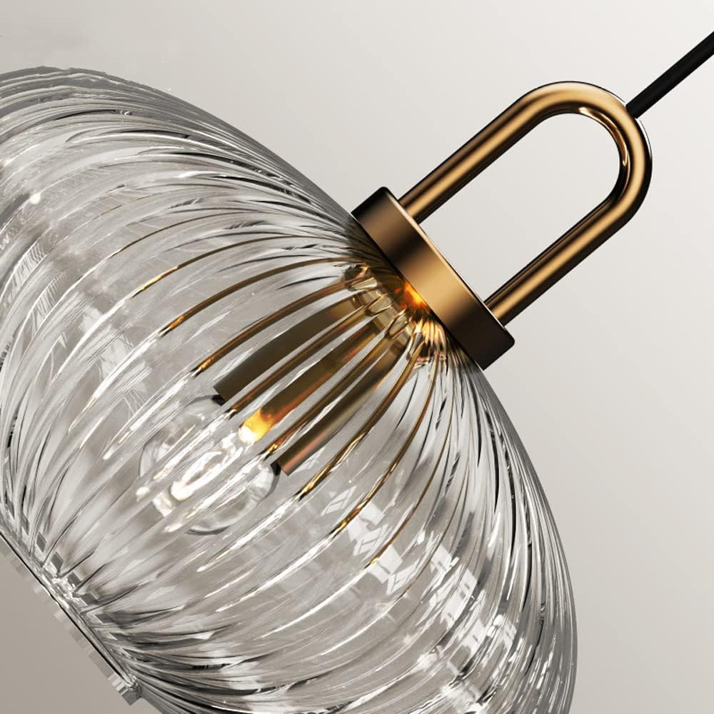 Apportez une touche de sophistication à votre espace avec cette lampe suspendue au design inspiré des années 70. Son verre strié translucide et son cadre en métal doré créent une ambiance lumineuse élégante et chaleureuse, tout en mettant en valeur le style rétro de la pièce.